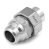 Raccord Union double étanchéité composé de 2 pièces lisses en inox 316L, d'un écrou de serrage octogonal et d'un joint plat en PTFE.