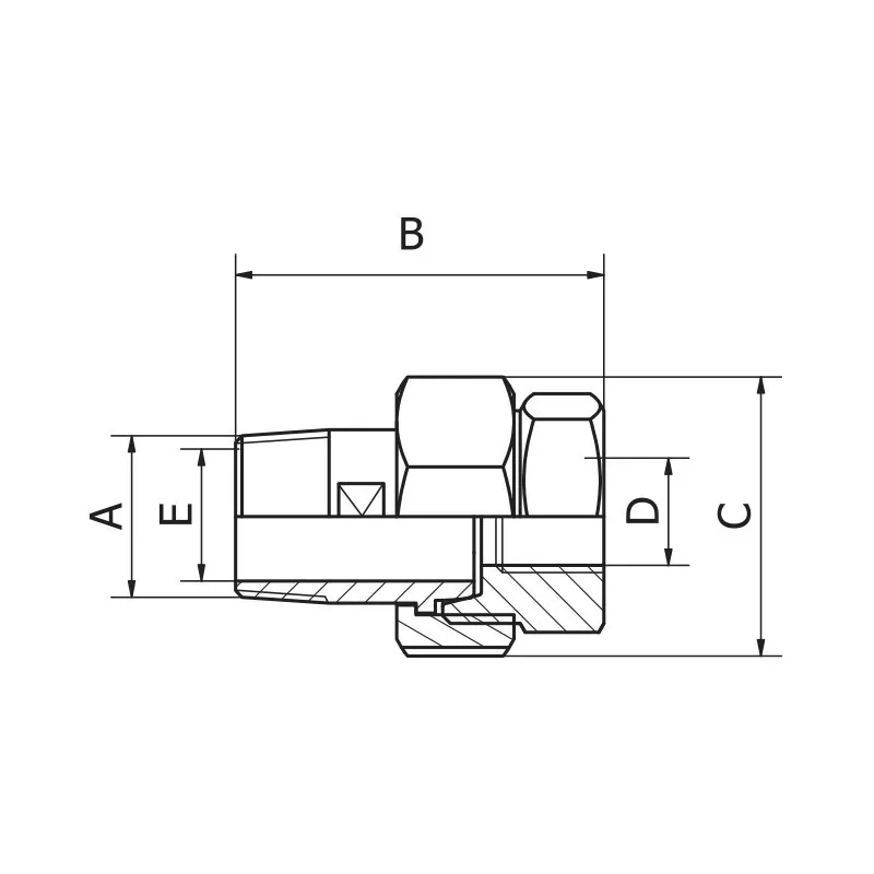 Raccord Union 3 pièces réduit, avec extrémités Mâle-femelle, usiné en inox 316L (1.4404)