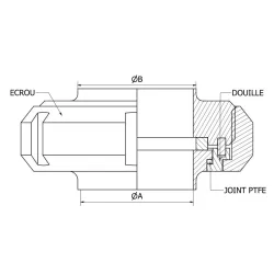 Ce raccord est composé d'une pièce lisse à souder SMS, d'une douille de raccord tournant, d'un nez à souder, d'un écrou SMS, d'un joint carré SMS en EPDM et d'un joint de raccord tournant SMS en Téflon.
