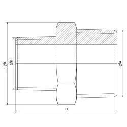 Réduction hexagonale mâle-mâle à filetage NPT, usinée en inox 316L EN 10272, destinée aux tuyauteries filetées des installations chimiques.